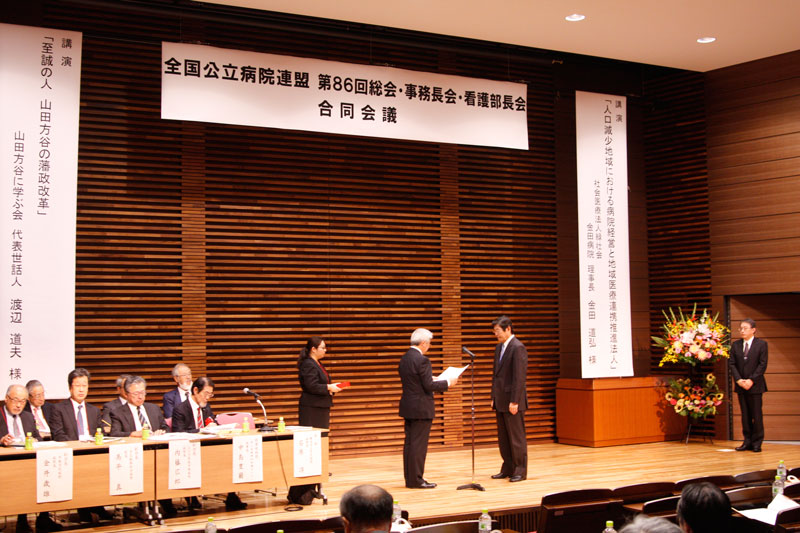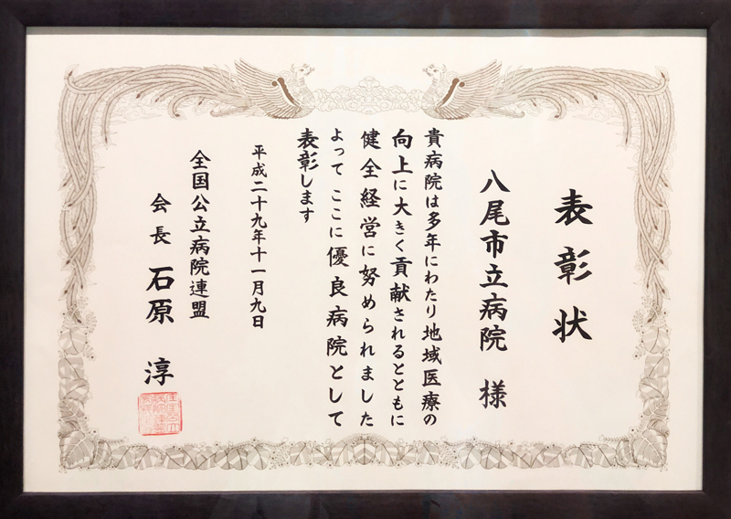 公益社団法人全国自治体病院協議会の会員病院で、経営の健全化の確保、経営の健全化への改善努力の成果、地域医療の確保への多大な貢献や取り組みを行っている病院を表彰するもの。