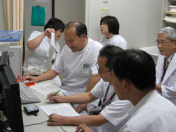乳腺外科医・放射線診断医・病理医・細胞検査士・薬剤師が週1回集まり、その週の乳腺疾患患者さん全員の放射線画像や臨床経過、細胞診検査・組織診検査を総合的に検討し、次の検査や行うべき治療について話し合い、患者さんにもっともよいと思われる方針を決定します。