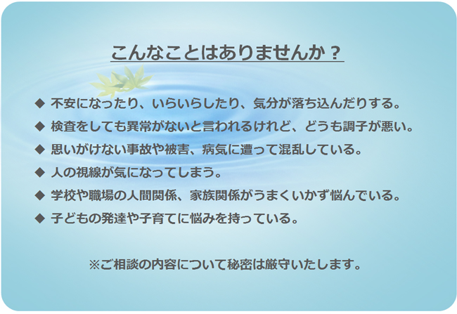 • 公認心理師・臨床心理士によるカウンセリングですので、薬の処方は致しません。