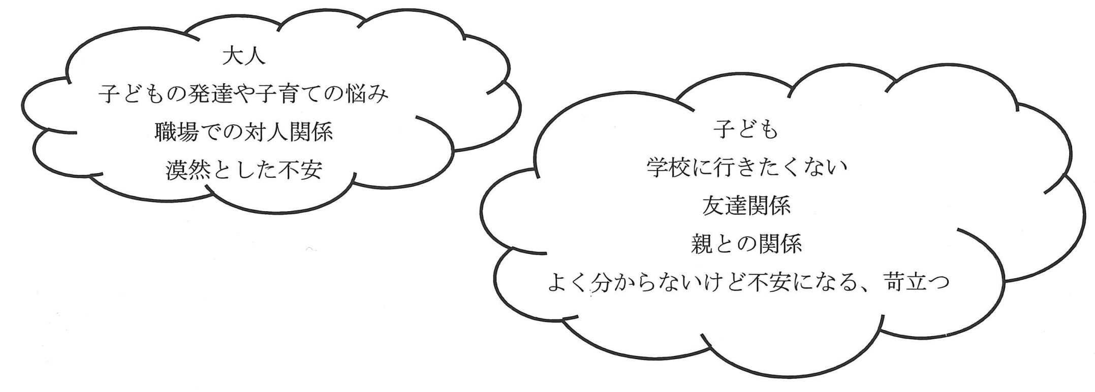 家族関係、職場や学校での対人関係、子育て等に関する相談が多くなっています。その他、ご自身の性格等に関するご相談内容など多岐に渡っています。