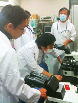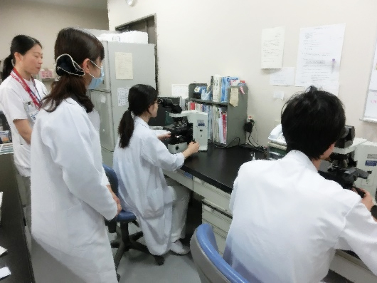 ▼細菌検査室での実習風景①