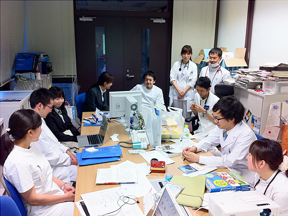 内科:一般内科、消化器内科、循環器内科を各8週ずつ研修します。